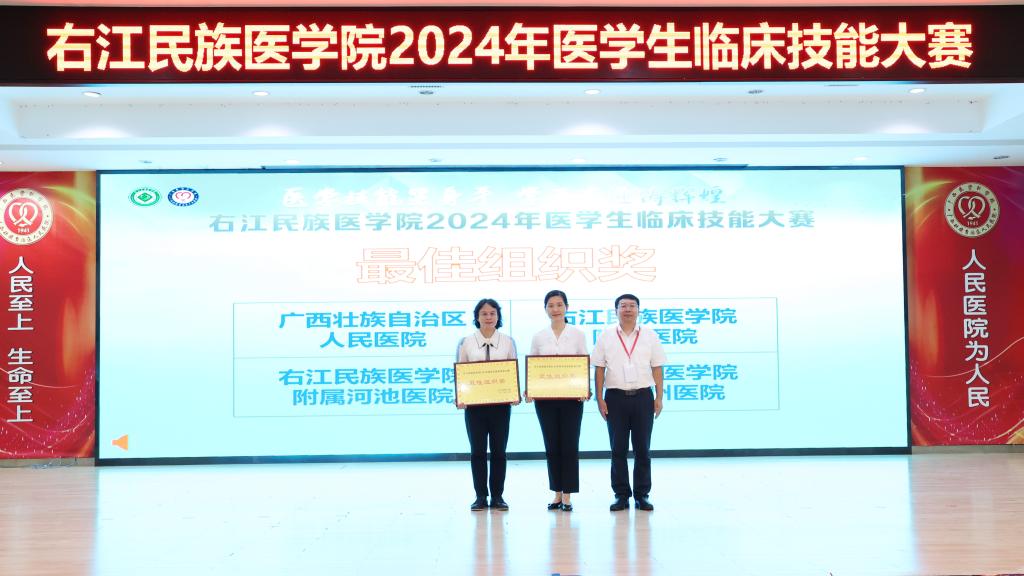 广西壮族自治区卫生健康委党组成员、副主任黎君君表示,医学教育是卫生健康事业发展的重要基石,临床技能大赛不仅是医学教育领域内的一次技能大比武,更是推动医学教育理念革新、教学方法创新的重要实践平台。黎君君指出,医院方面高度重视本次赛事的承办工作,按照大赛要求,精心组织并周密部署了各项筹备工作,从赛事筹备初期,医院便成立了专项工作组,明确了各部门职责分工,确保每一环节都有专人负责,不留死角。同时,黎君君要求要以此为契机,加强学校和医院之间的交流与合作,共同探索医学教育的新模式、新方法,为全区卫生健康事业高质量发展培养更多医德高尚、医术精湛的“明日医师”,助力“健康广西”建设。