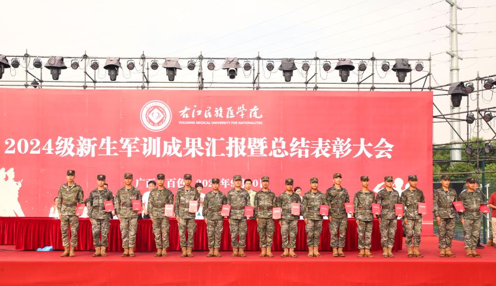 学校党委副书记赵丽娟,军训总指挥、武警百色支队副支队长张建中校出席大会,学校两办、党委宣传部、学工处、团委、武装部,各二级学院等相关负责人以及2024级新生军训团全体成员参加大会。大会由学校武装部部长、军训团团长杨文沛主持。