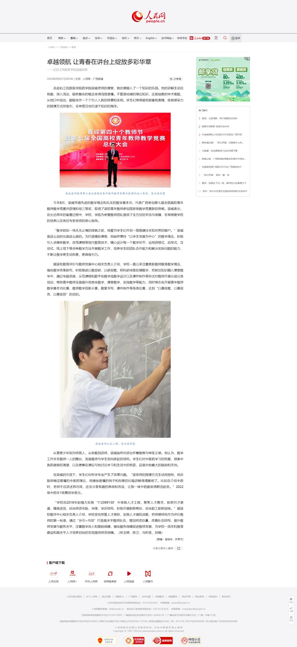 2024年9月27日,人民网以《卓越领航 让青春在讲台上绽放多彩华章》为题报道beat365参加第七届全国高校青年教师教学竞赛科组三等奖获得者梁威老师。