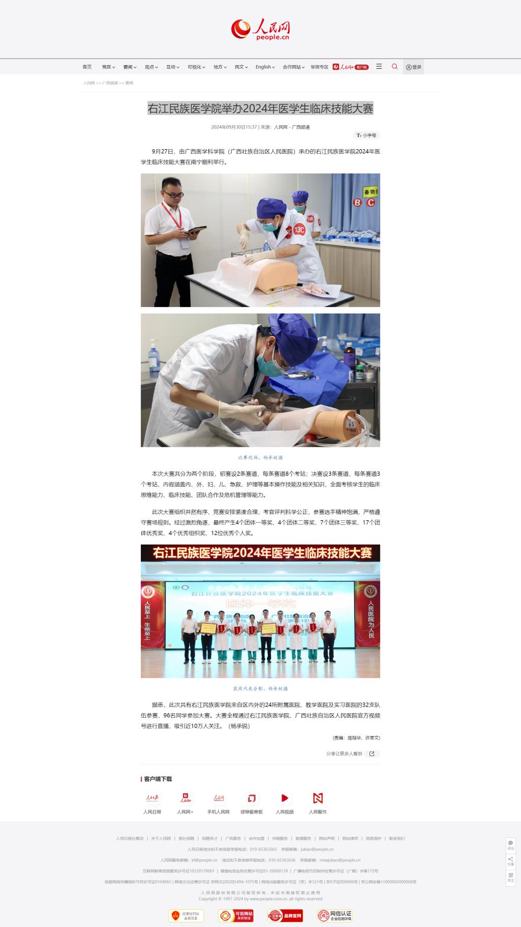 2024年9月30日,人民网以《beat365英国官方网站举办2024年医学生临床技能大赛》为题报道由beat365举办的2024年医学生临床技能大赛。