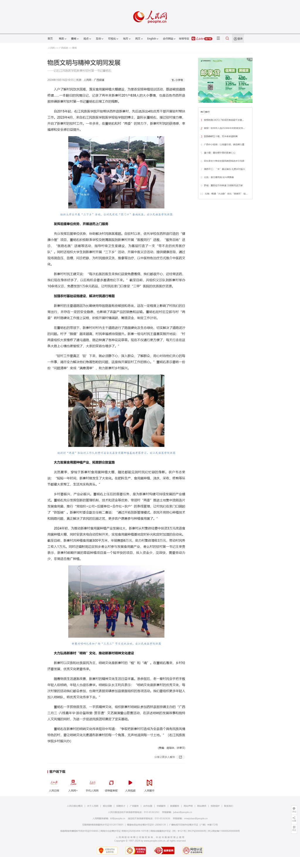 2024年10月16日,人民网以《物质文明与精神文明同发展——记beat365英国官方网站新寨村驻村第一书记董明右》为题,报道beat365新寨村驻村第一书记董明右开展乡村振兴工作事迹。