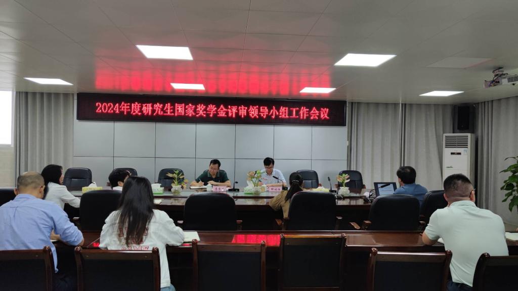 研究生学院党委书记、院长莫小强向评审领导小组介绍了本年度国家奖学金各培养单位推荐指标分配、评审实施办法、候选人资格审查等情况。评审领导小组对本年度23名参评研究生的材料进行了审议,并通过投票表决,产生了2024年度研究生国家奖学金拟推荐获奖人选共14人。