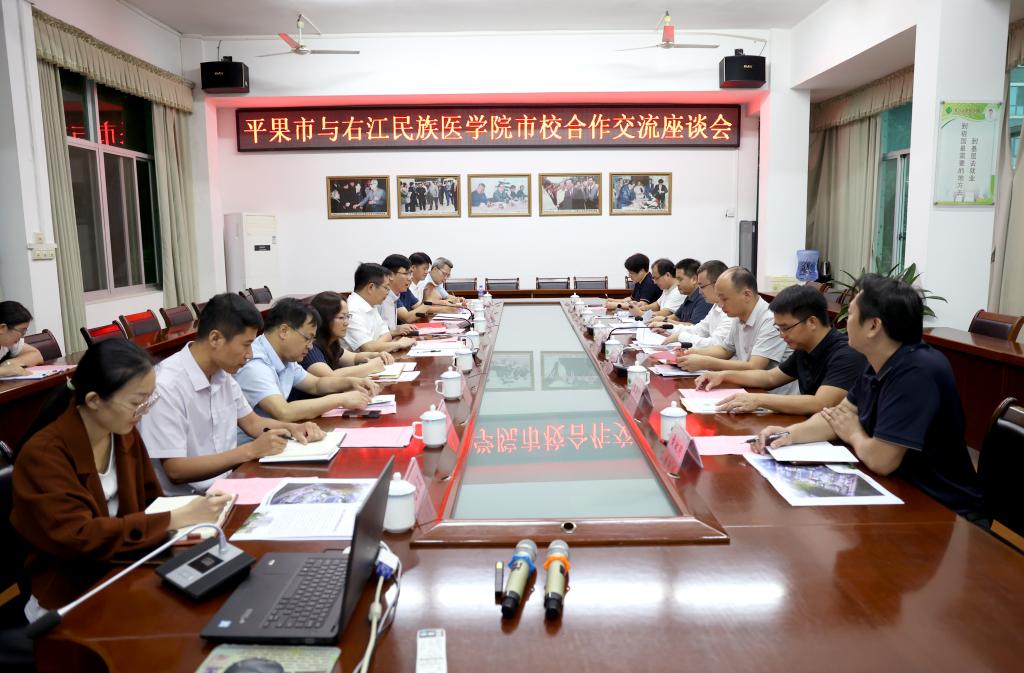 在座谈中,李雪斌指出了学校在医学教育和科研方面的优势,表达了积极参与合作的决心。他表示,学校将积极发挥自身在医学科研、人才培养和学科建设等方面的优势,与平果市共同探索创新合作模式,携手培养高素质的医学人才,开展前沿的医学研究,进一步提升平果市区域医疗服务水平,为地方医学事业的发展贡献力量。