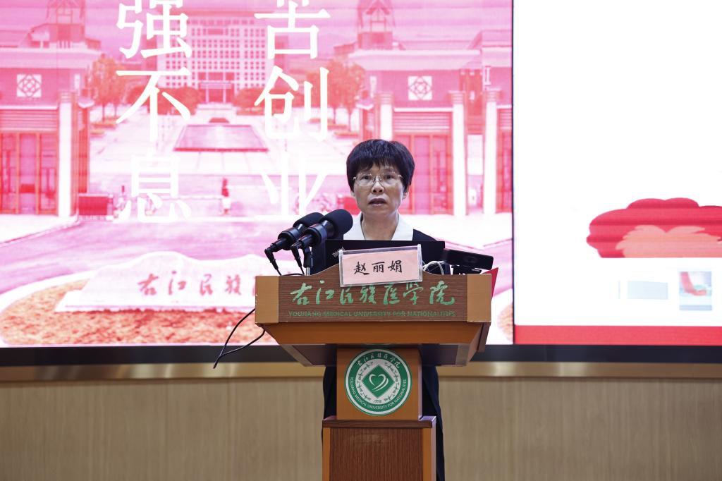 仪式结束后,赵丽娟以“两会育光,青马逐梦”为题,围绕学习贯彻党的二十届三中全会和全国教育大会精神的具体行动,深入实施马克思主义者培养工程,培养学生们在实践中积极传播马克思主义理论,展现新时代青年的风采等内容为第二十二期青马工程进行开班第一讲。