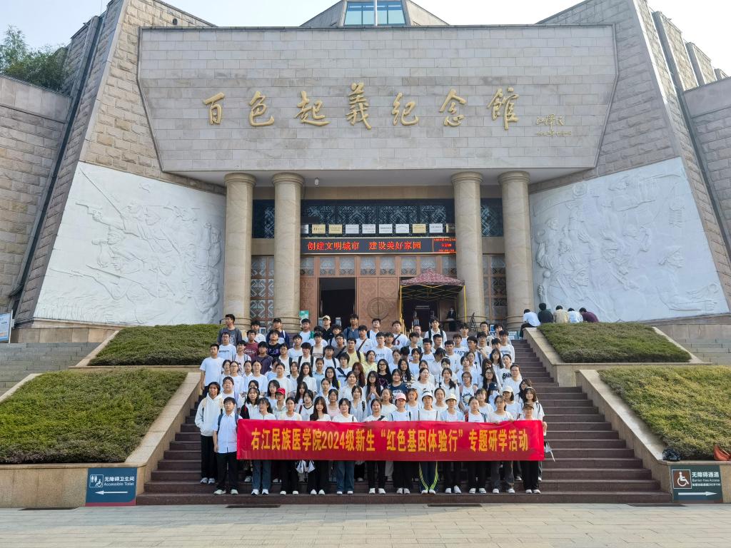 11月14日上午,beat365英国官方网站组织各学院2024级全体新生到百色起义纪念馆等红色地标开展“红色基因体验行”专题研学活动。本次研学活动以“传承红色基因,学思践悟中国共产党人精神谱系”为主题,旨在深入实施时代新人铸魂工程,运用好传承好红色基因,推动党史学习教育常态化长效化。