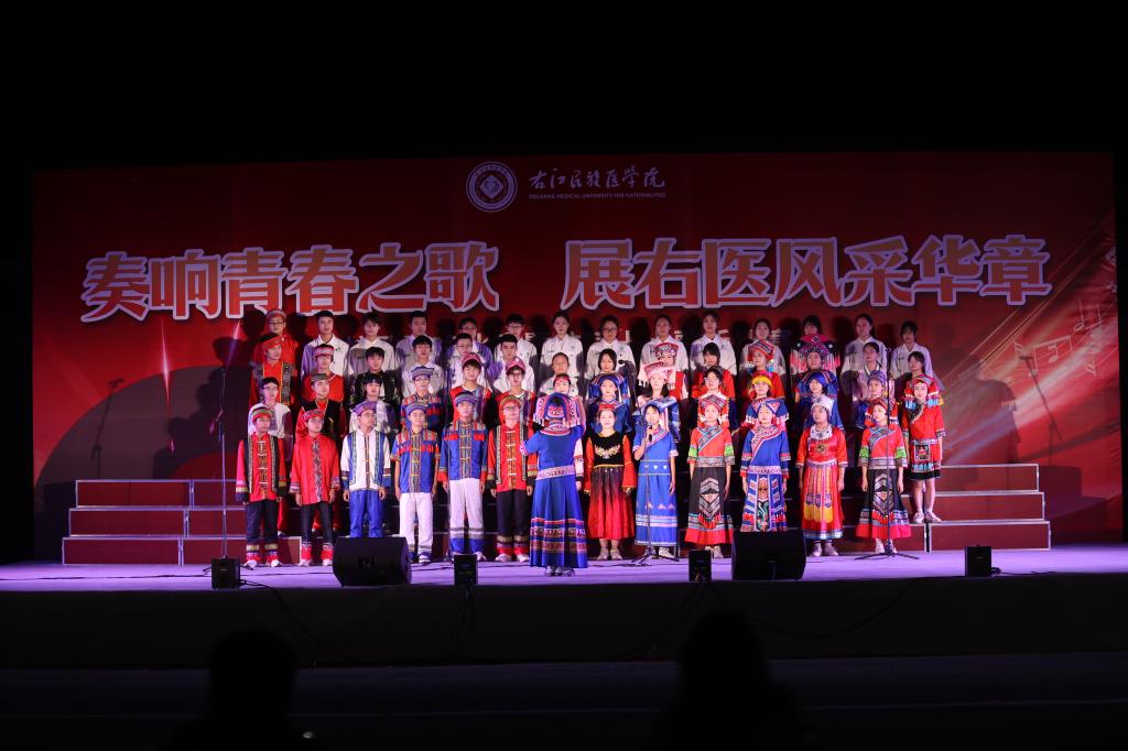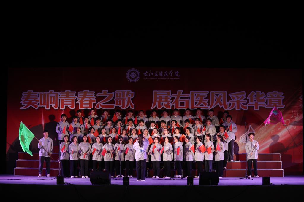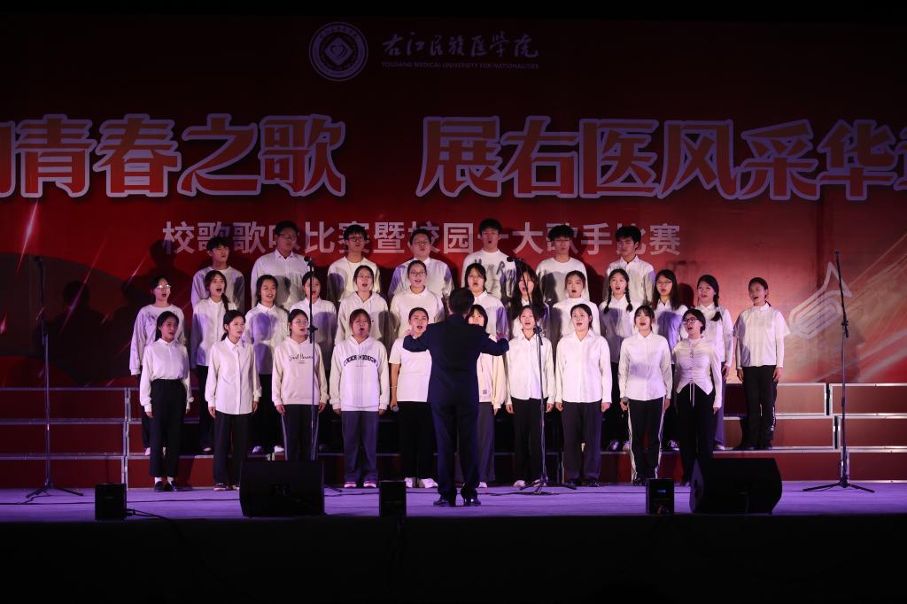 “红土地上,右江岸边,岁月的春风美丽着校园……”,伴随着校歌的悠扬旋律,校歌合唱比赛正式拉开序幕。首先走上舞台的是公共卫生学院代表队,他们以深情的歌声表达了对祖国和母校的无限热爱。歌声中,岁月的春风在校园里留下了美丽的痕迹……