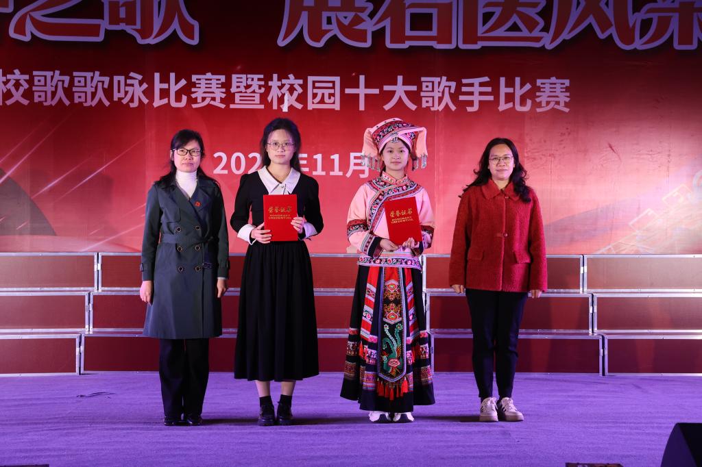 现场的评委们对各参赛队伍进行了严格的评分。他们从演唱技巧、舞台表现、情感表达等多个方面进行了全面的考量。经过激烈的比拼,语言文化学院获得一等奖,基础医学院、护理学院获得二等奖,药学院、医学影像学院、人文与管理学院获得三等奖,口腔医学院、公共卫生学院、全科医学院、医学检验学院获得优秀奖。