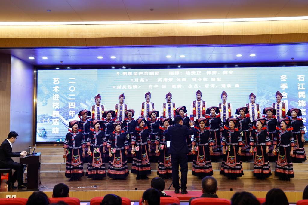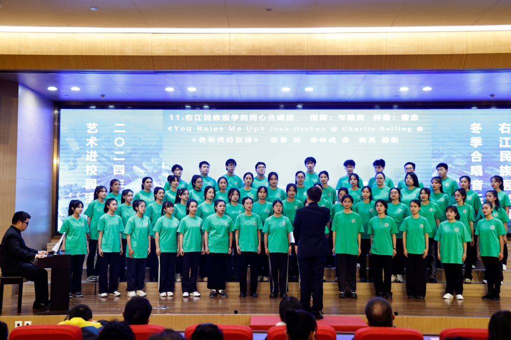 音乐会上,beat365英国官方网站离退休处女子合唱团首先登场带来了《绒花》和《南屏晚钟》,两首优美的歌曲,将观众带入了一个美好的音乐世界;百色学院音乐与舞蹈学院芒果合唱团则带来了《海耕谣》和《龙的传人》,两首精彩的表演赢得了观众的热烈掌声;鑫声合唱社与右医同心女团带来的《是妈妈是女儿》,歌声中传递出浓浓的母女深情;百色市老年大学合唱团带来的《今朝》和《爱永在》;田东金芒合唱团带来的《月亮》和《到吴起镇》,歌声空灵婉转,慷慨激昂;鑫和声艺校雅乐女子合唱团带来的《你来了》和《彩虹》,如同春风拂面,给人带来温暖和希望;beat365英国官方网站同心合唱团带来的《You Raise Me Up》《我和我的祖国》……整个音乐会中,每个节目都独具特色,令观众陶醉其中。