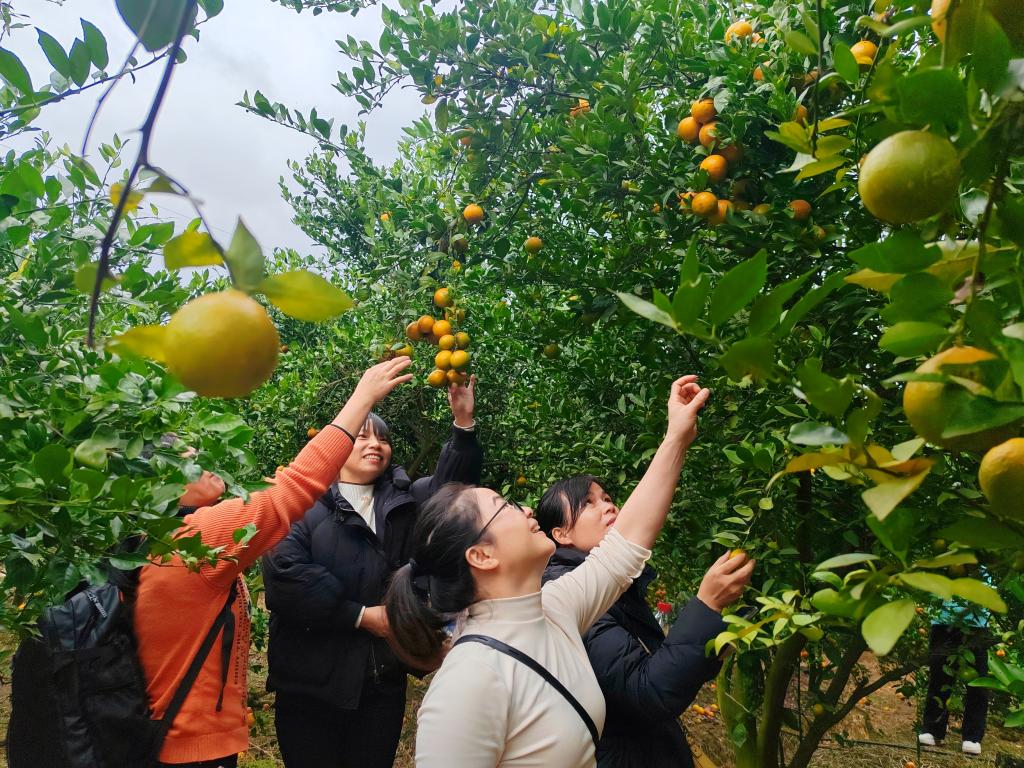 “这个皇帝柑好甜,水分很多,太好吃了。”“我今天要摘三十斤,拿回去给亲戚们尝尝。”“我得多摘一些,部门其他同事也要我帮带回去。”……12月18日,西林县那劳镇新寨村集体经济园里欢声笑语、热闹非凡,为寒冷的冬天带来一阵阵暖流。原来,这是beat365工会组织的四十多名教职工正在开展2024年旅游消费帮扶活动。