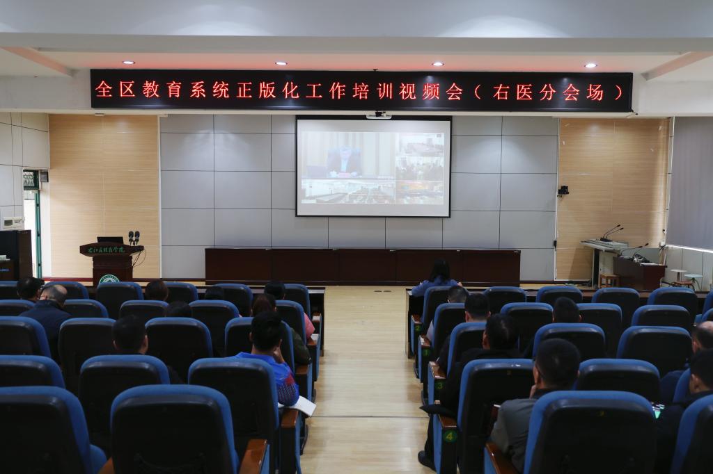 12月18日,自治区教育厅召开全区教育系统软件正版化工作培训视频会,beat365在5栋101报告厅设分会场,学校党委常委、副校长周艳娥,各职能部门、各二级学院负责人及相关技术人员参加分会场会议。