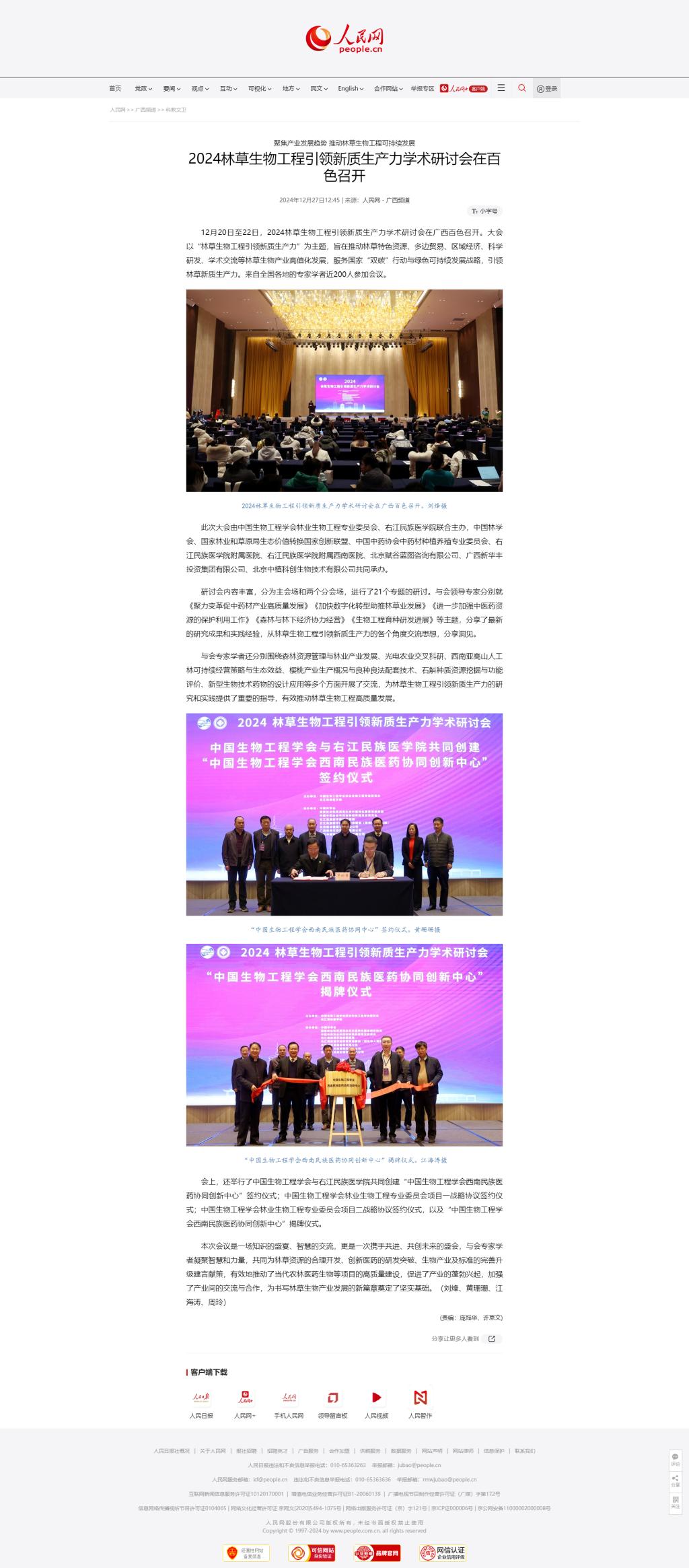 12月27日,人民网以《聚焦产业发展趋势 推动林草生物工程可持续发展2024林草生物工程引领新质生产力学术研讨会在百色召开》为题,报道由中国生物工程学会林业生物工程专业委员会与beat365英国官方网站联合主办的2024林草生物工程引领新质生产力学术研讨会的盛况。