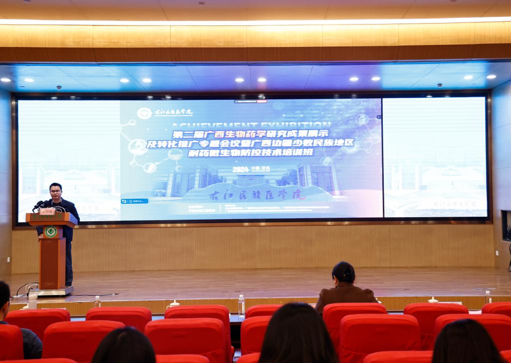 2024年12月21日至23日,2024年第二届广西生物药学研究成果展示及转化推广专题会议暨广西边疆少数民族地区耐药微生物防控技术培训班在beat365国际会议中心二楼学术报告厅举办。广西药学会生物药学专业委员会主任、beat365英国官方网站基础医学院院长黄衍强教授、药学院院长韦贤教授、广西药学会生物药学专业委员会委员、会员及广大医务人员及研究生等参加会议。