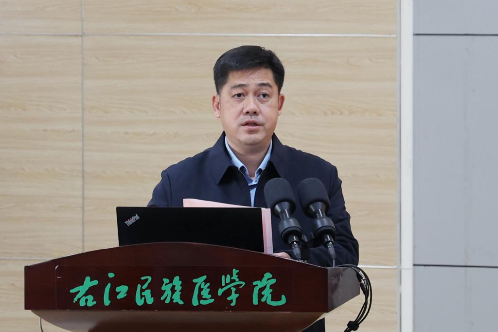 李雪斌书记作总结讲话,他对长期以来关心支持和参与学校毕业生就业创业和征兵工作,以及为毕业生就业创业工作作出贡献的全校师生员工表示感谢,对获奖集体和个人表示祝贺。就确保完成2025届毕业生各重要时间节点的就业目标任务提出三点意见:一是强化政治担当,以高度的责任感和使命感做好就业工作。要提高政治站位,增强责任感、使命感,压实工作责任,务实细化举措,以狠抓落实的定力,用心用力用情做好毕业生就业创业工作;二是突出就业优先,推动就业创业工作目标任务落地落实。要始终坚持突出就业优先的导向,坚持把就业作为学校质量文化的优先目标,强化支持就业导向各项措施。把就业创业工作落在具体上、落到实处上。三是加强组织领导,压实压紧工作责任。各部门、各二级学院负责人要带头抓、重引领,压实就业创业的主体责任;要增强工作活力,共同努力,协同推进;要进一步完善协同机制,构建党委统一领导、招就中心统筹协调、各学院具体落实、教职工人人有责的四级联动工作机制,形成强大合力;要加强督促检查,各部门要坚守就业工作纪律,严格执行“四不准”“三不得”,坚持把就业数据的真实性、准确性作为就业统计工作的红线和底线。