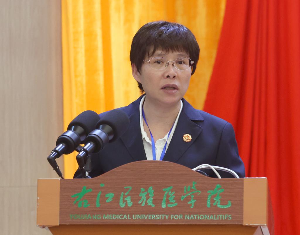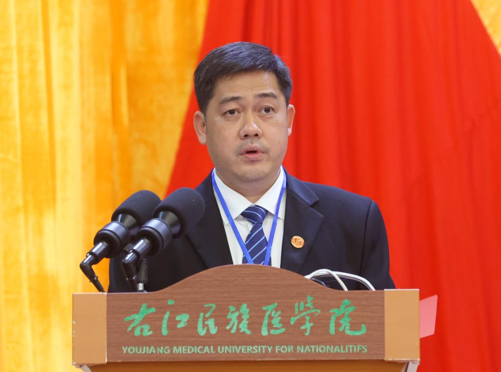 会议号召全校师生员工要更加紧密地团结在以习近平同志为核心的党中央周围,以习近平新时代中国特色社会主义思想为指导,全面贯彻落实党的二十大和二十届二中、三中全会精神,坚定拥护“两个确立”、坚决做到“两个维护”,紧紧围绕高质量教育服务支撑高质量发展的首要任务,以铸牢中华民族共同体意识为主线,深刻认识当前我们所处的重要战略机遇期,将“大学建设”铭刻心间,将“勤勉务实”奉为至上,将“担当实干”深植心中,牢固树立“实干为要、创新为魂,用业绩说话、让人民评价”的鲜明导向,以更加饱满的热情、更加昂扬的斗志、更加务实的作风,一张蓝图绘到底、一身担当拼到底、一心求真实到底、一路同行走到底,奋力开创新时代区域性高水平医科大学新篇章,为助力教育强国建设、谱写中国式现代化广西篇章、服务边疆民族地区经济社会发展贡献右医的磅礴力量。
