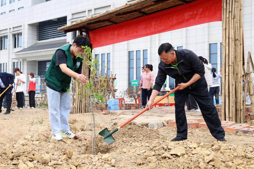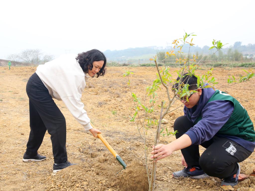 经过大家的共同努力,原本空旷的土地上,一株株石榴树、桃树、三角梅等树苗昂然挺立,在春风中展现出勃勃生机。“全民植树增绿,共建美丽中国,是总书记的明确要求。”李雪斌说,“本次活动主要有种植‘同心树’、共筑‘美校园’、认领‘责任田’、共建‘心愿墙’等内容,学校也将以此次植树节活动为契机,进一步加强校园绿化建设和生态环境保护,积极倡导绿色生活方式,引导广大师生树立‘绿水青山就是金山银山’的理念,共同为建设美丽校园、美丽百色贡献力量。”