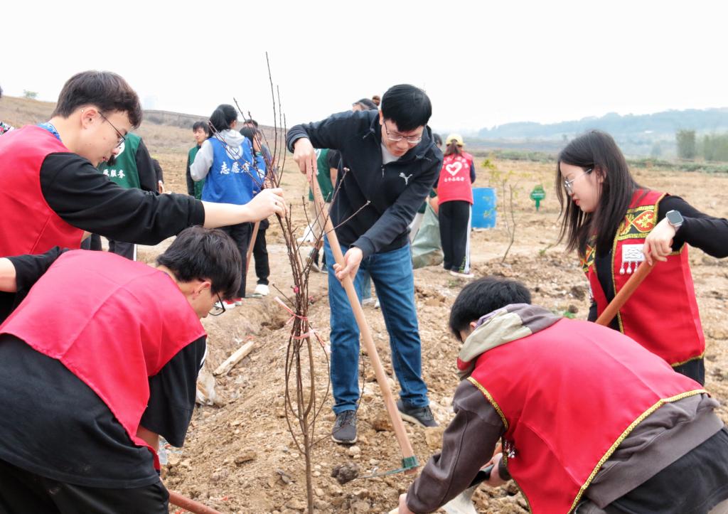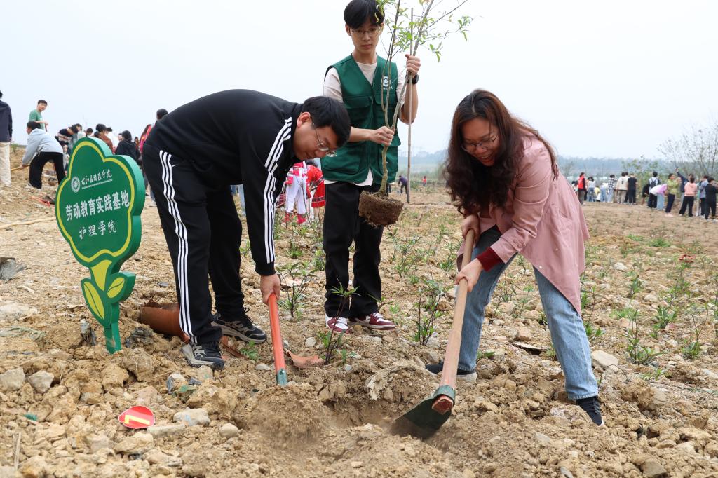 阳春三月,草长莺飞,3月12日植树节当天,beat365英国官方网站组织开展了一场主题为“同心共植团结林 润心耕耘幸福园”的植树活动,学校领导与各族师生齐聚百东校区劳动教育实践基地(润心耕耘园),携手种下象征着民族团结的石榴树,以实际行动为校园增添一抹新绿,共同描绘生态文明校园的美好画卷。