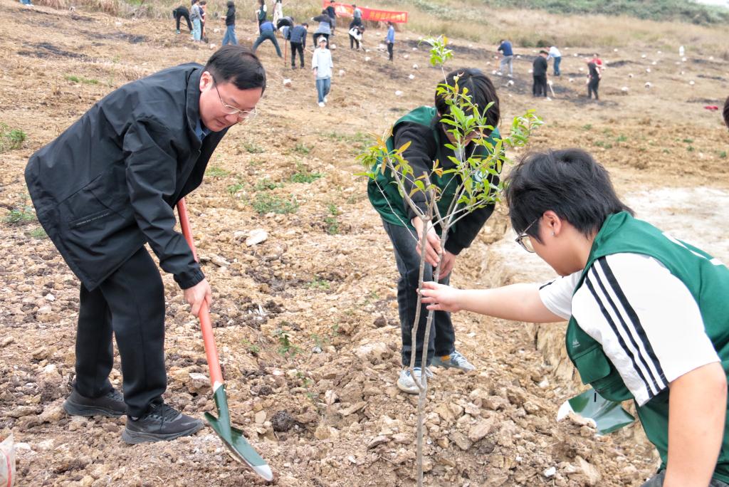 活动当日,微风轻拂。上午9时,学校党委书记李雪斌,党委副书记、校长黄龙坚等校领导来到植树现场,共同与师生们参加到植树活动中。