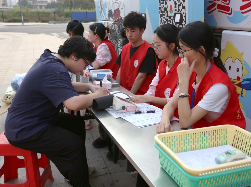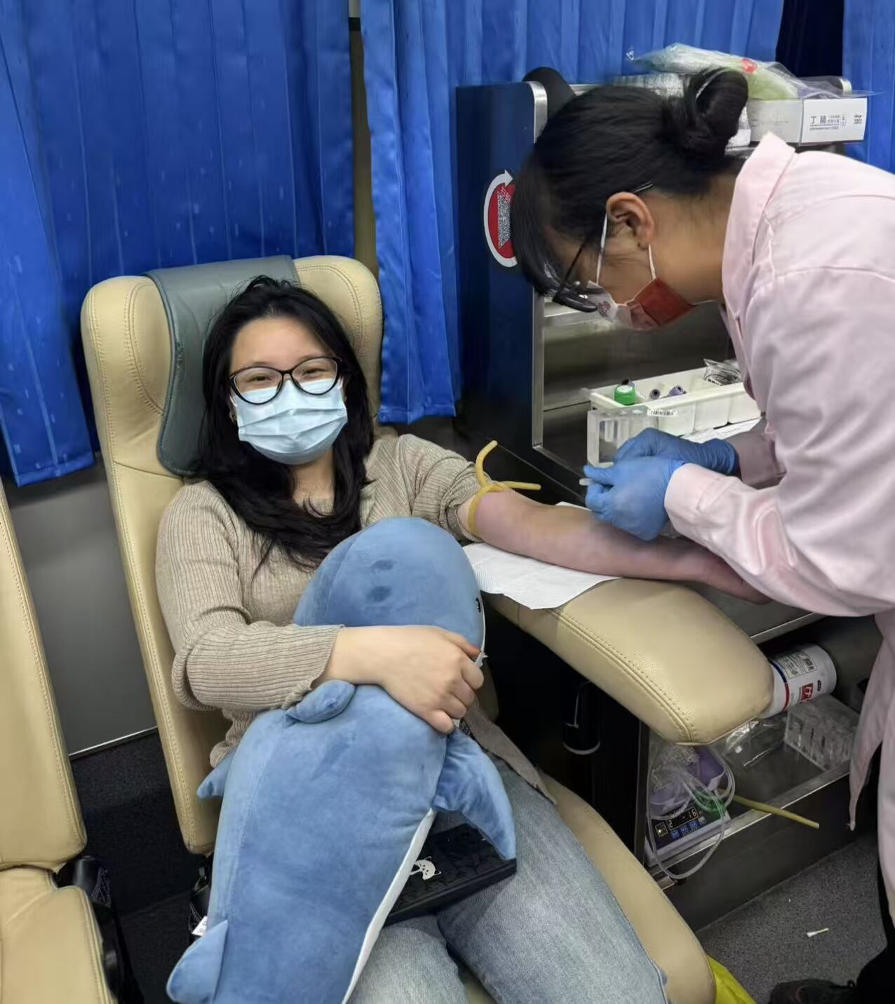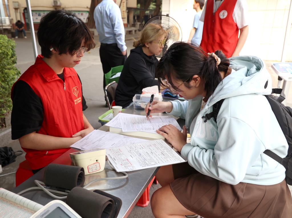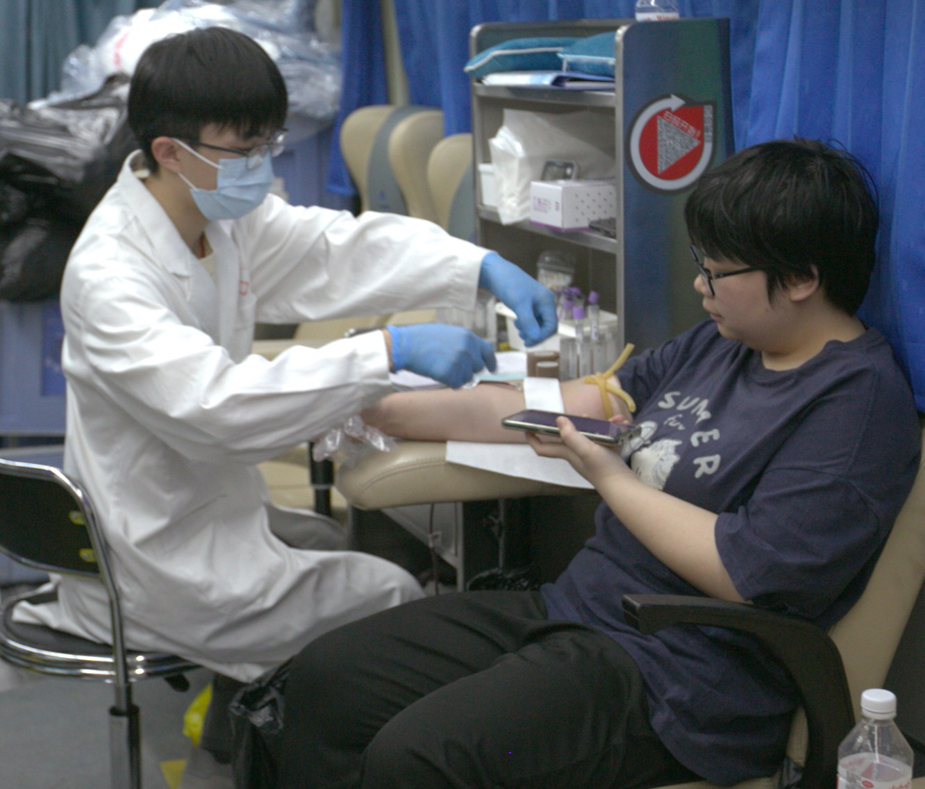 除了李同学,现场还有许多师生也积极参与其中。来自柬埔寨的刘同学来到献血车上进行献血,她表示,虽然自己不是“熊猫血”,但作为医学生,她更明白血液对生命的重要性,在能力范围内应多帮助他人。
