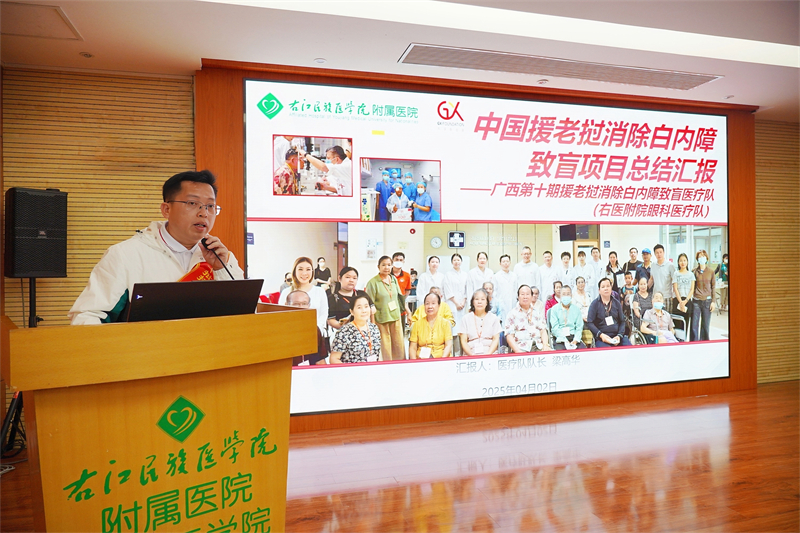 临床医学院(附属医院)眼科主任梁高华博士汇报共享基金会广西第十批援老挝消除白内障致盲项目医疗队援外医疗工作情况