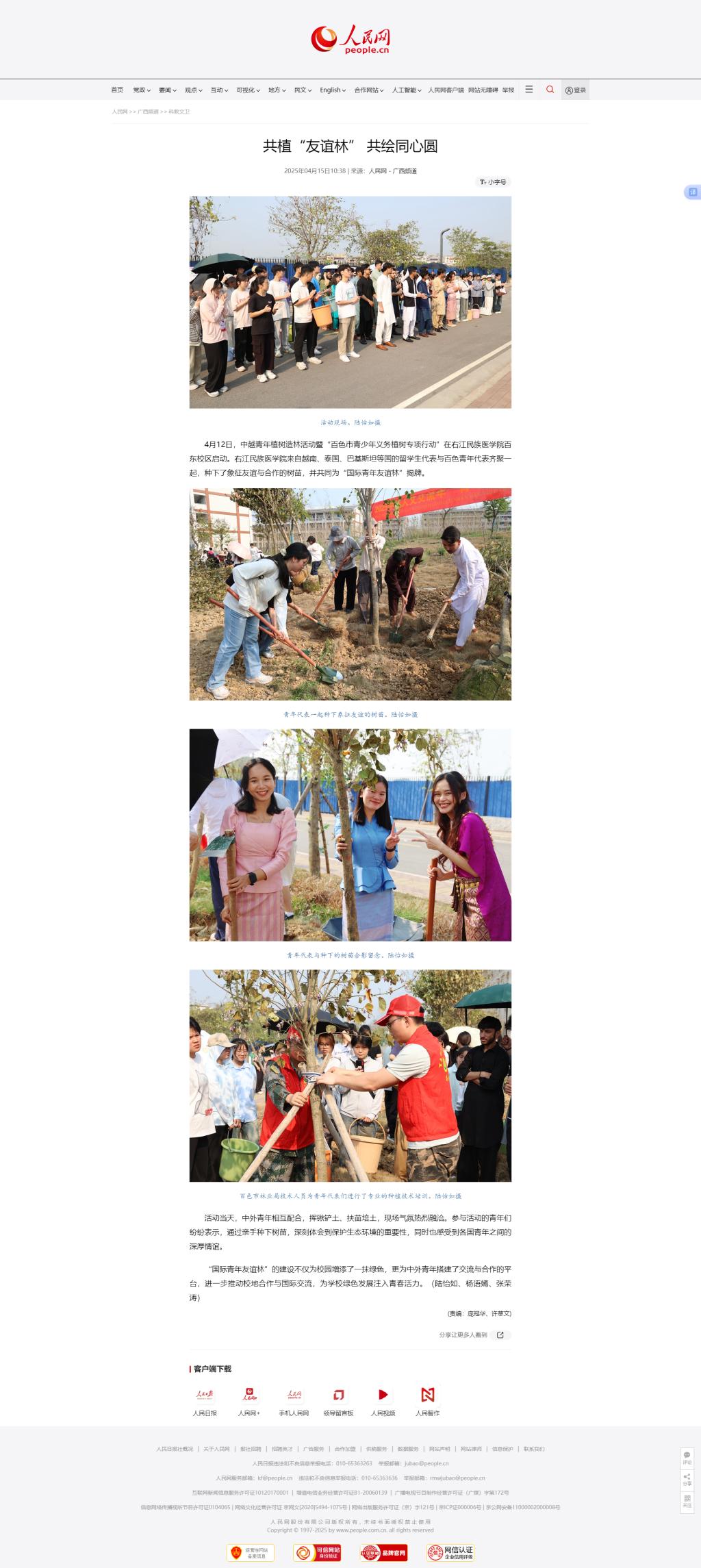 4月15日,人民网以《共植“友谊林” 共绘同心圆》为题,报道中越青年植树造林活动暨“百色市青少年义务植树专项行动”在beat365启动。http://gx.people.com.cn/n2/2025/0415/c179462-41196906.html