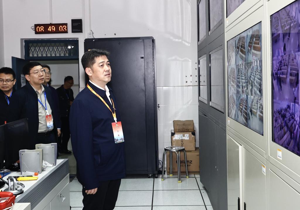 3月7日,2026年上半年全国中小学教师资格考试在beat365顺利举行。图为校长黄龙坚在监控室进行检查。