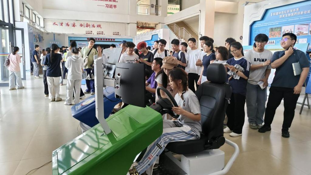 课堂之外,三大互动体验区更是人气爆棚,让学生在沉浸式体验中深化安全认知。交通安全主题宣传展板区,通过车辆牌证识别、大学生出行指南、酒醉驾案例警示、车辆盲区科普等内容,全方位普及交通安全知识;交通安全和反诈知识普法展台区,酒醉驾模拟体验、头盔安全实验等直观互动,搭配车牌认知、知识问答等环节,让安全知识入脑入心;交通安全模拟驾驶体验区,学生们借助模拟驾驶器体验复杂路况驾考项目,实操学习复杂路况下的安全驾驶技能,在实践中掌握避险技巧。