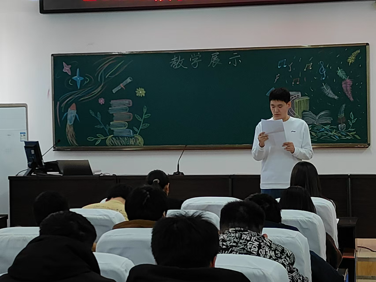 实习生代表金怀芳同学以《热机》这这节课为例进行无生课堂展示,她灵活的讲解、创新的实验演示、标准的教姿教态和恰到好处的提问技巧将中学物理课多种教学方法精彩纷呈的展现了出来,金怀芳同学的教学展示代表着2021级物理学专业学生学习成效的“冰山一角”。