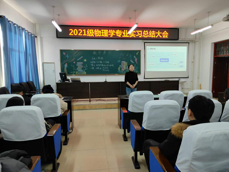 12月24日,开云kaiyun官方网站召开2021级物理学专业教育实习总结大会,开云kaiyun官方网站教学副院长王玉玲、实习指导教师任艳东、崔海瑛、李秀明、郝淑娟及物理学专业教师和2021级物理学专业全体同学出席本次会议,会议由物理学专业负责人杨瑞老师主持。