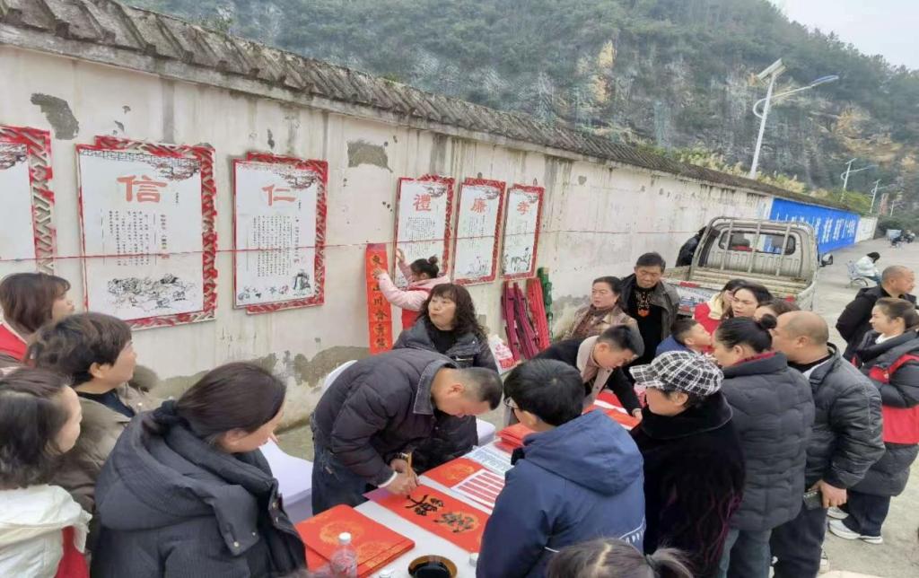 寒假期间,同学们走进乡村,开展了一场别开生面的写春联送祝福活动。活动现场,书法爱好者们豪情满怀,挥毫泼墨,一幅幅寓意吉祥的春联在他们的笔下跃然纸上。村民们闻讯而来,热情围观,仔细挑选着自己心仪的春联,脸上洋溢着喜悦的笑容。墙边,“信、仁、礼”等传统美德的宣传标语赫然在目,与那一幅幅喜庆的春联相映成趣,共同营造出一种浓厚的文化氛围。此次实践活动不仅传递了新春的温暖与祝福,更让传统文化在乡村这片沃土上生根发芽,绽放出新的光彩。