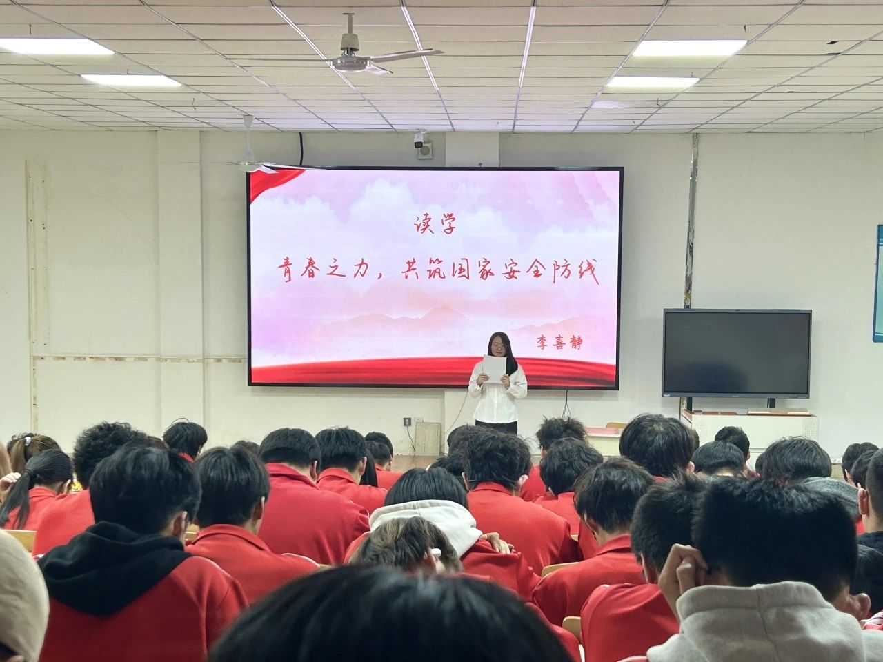 在读学环节,同学们朗读国家安全法等相关法律法规,对国家安全有了更深入的了解。宣讲环节宣讲者们用生动的语言和真实的案例,将国家安全的理念深入人心,强调每个人在维护国家安全中的责任和义务。同学们纷纷表示要时刻牢记国家安全,为国家的繁荣富强贡献自己的力量。