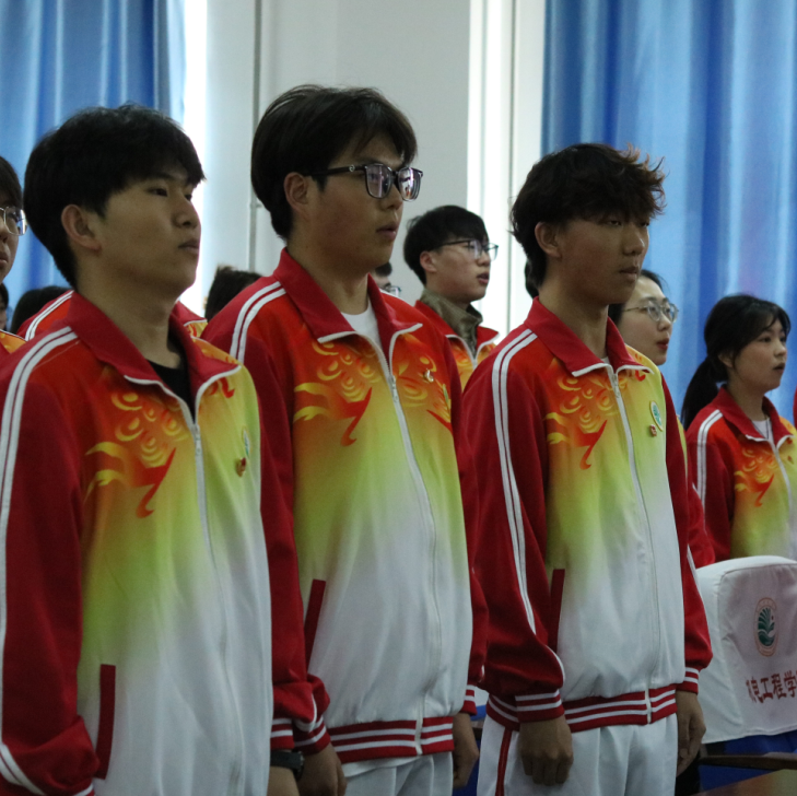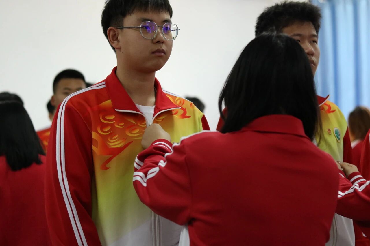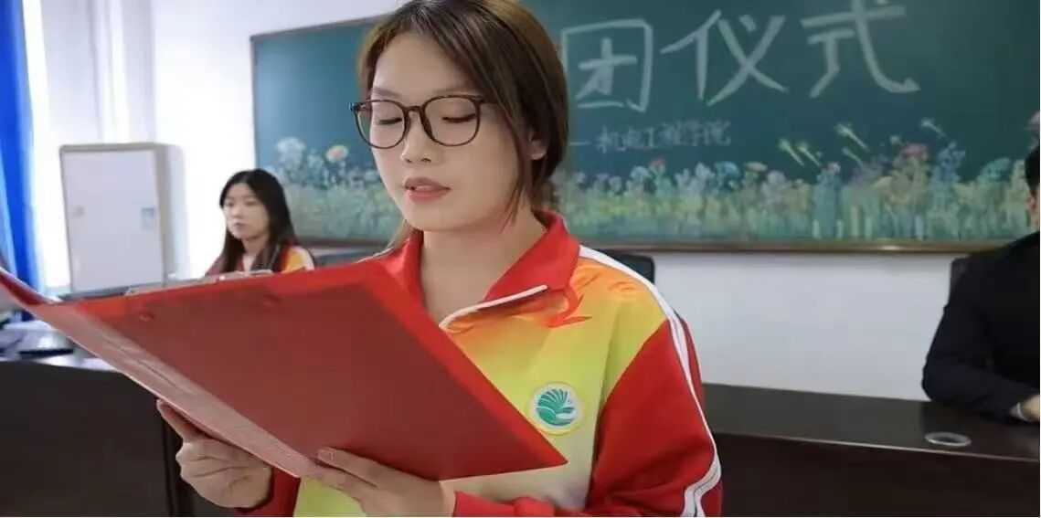 首先,主持人宣读新团员入团名单,本次一共有102名同学光荣的加入中国共产主义青年团,老团员代表为新团员们佩戴上闪耀的团徽,那小小的团徽承载着重大的使命与责任。激励青年们传承革命传统,弘扬奋斗精神。