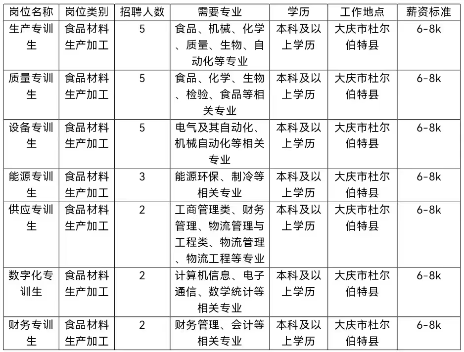杜尔伯特伊利乳业有限责任公司校园招聘