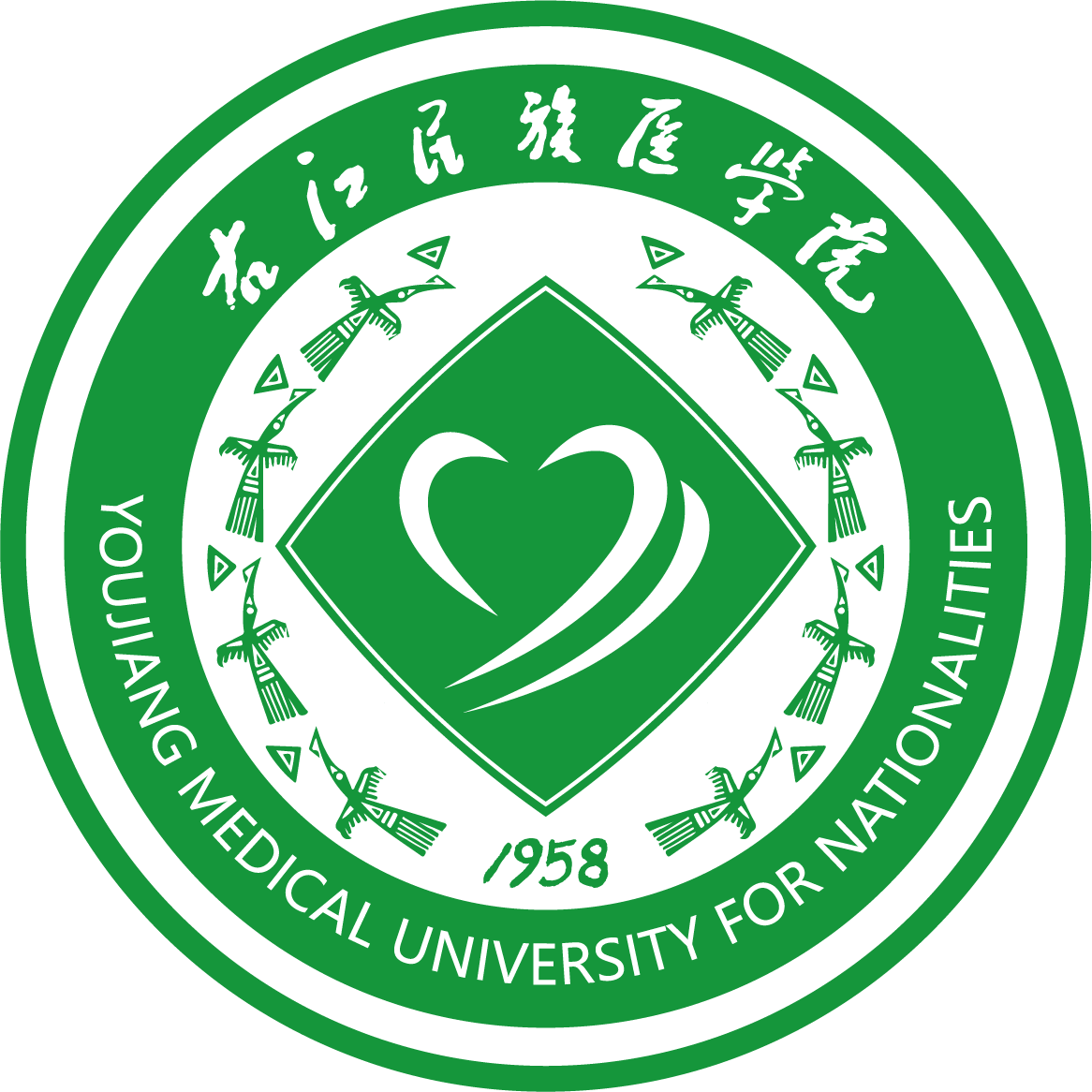 beat365校徽的底色分为绿色和红色两种,象征着生命、青春、健康。绿色调定为beat365形象的基本色。 校徽的核心是由两个“y”变形而成的“心”形白色图案。 两个“y”取自于“beat365英国官方网站”校名中“右医”两个字汉语拼音的首写字母, 寓示校名。 两个“y”字重叠而变成两颗重叠的“心”字,寓示着“用心学习”和“用心服务”两层基本含义。所谓“用心学习”,即要求师生员工按照“学会认知、学会做事、学会合作、学会做人”的要求去用心和努力。 所谓“用心服务”是指同学之间、师生之间、 医患之间、 医护之间都必须“用心沟通、用心关爱、用心合作、用心奉献”,努力成为医德高尚、德艺双馨的专业人才。 校徽中的“心”形为圆形,与外形的白色钩边菱形构成“方圆”的动感效果和寓意,寓示“天方地圆,行有规,坐有矩,且不失灵活变通”的行为要求。